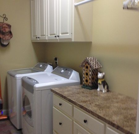 Granite in kitchen & bathrooms. Custom Southern Pecan cabinets in kitchen, walk-in pantry & stainless steel gas cooktop, electric double self cleaning ovens, microwave & dishwasher. Keeping room off kitchen & 10' & 12' ceiling heights. Triple crown molding, Australian Cypress wood flooring with ceramic tile in kitchen & bathrooms. Gas log fireplace with remote & decorative mantle. Two hot water heaters, generator, all custom cabinets. Open floor plan with a wall of windows overlooking patio & stocked pond. Separate computer nook. Security system and ceiling fans in every room. Electric washer & dryer connections in large laundry room with freezer space & lots of cabinets. Formal dining area. Large master bedroom has a wall of windows overlooking pond with a spacious master bath with separate shower & jetted oversize tub with huge walk-in closet. Foam insulation. Manicured 9.41 acres.