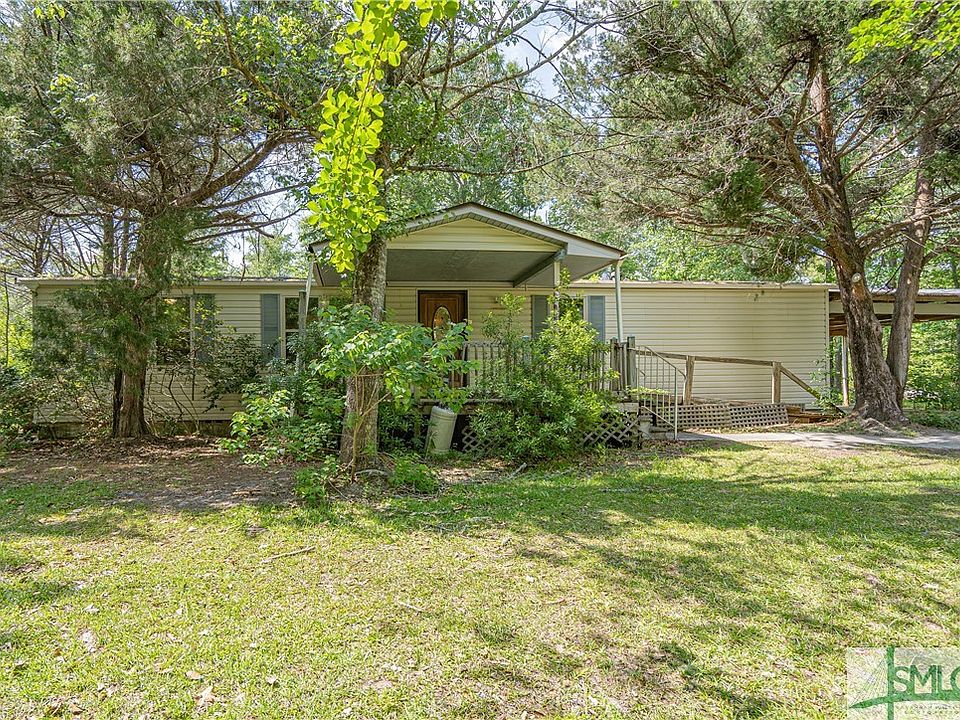YOUR 12+ ACRE RETREAT AWAITS- tucked quietly away from the hustle and bustle, but with easy access to I-16 is this 3 bedroom 2 bath country retreat with a pond! Boasting an expansive screened porch and a second equally as expansive sun porch, plus a covered front porch, double carport, a huge workshop and a shop with lean too and even more storage. The split floor plan offers a living room and a dining area that is open to the L-shaped kitchen via a breakfast bar. The kitchen includes a double sink, ample storage and all appliances will remain, even the washer and dryer in the separate laundry room. The primary suite is spacious and boasts a full bath. Live in this home while you build your dream home or bring out your friends or family! There is room for everyone thanks to 12.15 acres, 3 power poles, a septic system and electrical already installed for a second home! Home is on a permanent foundation.