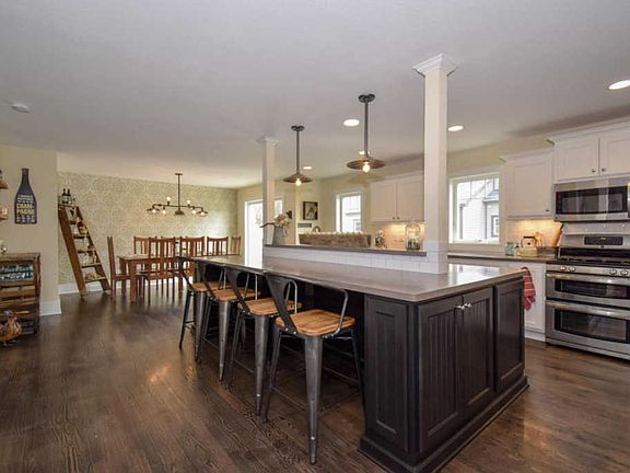 Welcome to this recently constructed home with a custom layout appealing to today's buyers. Every detail has been expertly planned for this home, starting with the wide plank hardwood floors to the generous island, farmhouse sink and soft close white flat panel custom cabinetry & built-in benches in the kitchen. The rustic farmhouse decor perfectly shows off this spotless, impeccably maintained home. The dining room with bar alcove opens to the deck and the wood and white spindle baluster leads to the second level & master bedroom w/ en suite bath featuring white subway tile. Home won't last!