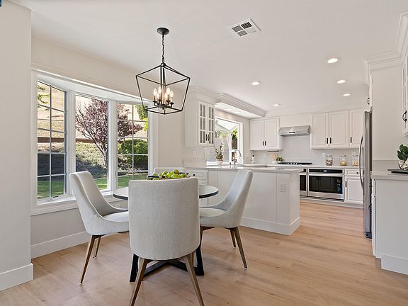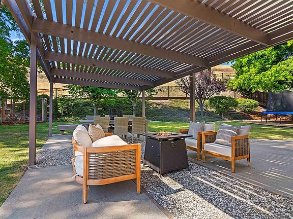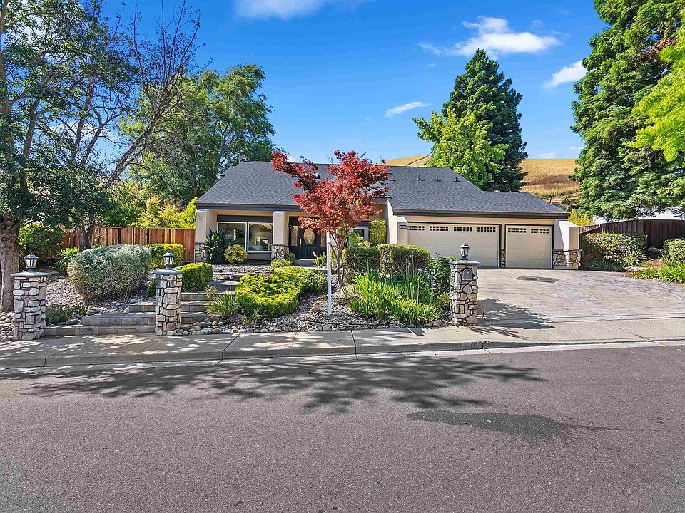 Available to show NOW! Prime location surrounded by open space and on a 15,000 sq. ft. lot. Ultimate privacy, a large backyard patio covered by a trellis and a huge grassy area for the kids to play. Plenty of room for a pool or even to add an ADU. A highly desired floor plan that's recently been updated- a bedroom and bath downstairs that has a perfect in law set up and four bedrooms with two baths upstairs. Vaulted ceilings and waterproof Luxury vinyl plank flooring throughout. The kitchen opens nicely to the family room and overlooks the backyard. White cabinets, quartz counters, stainless steel appliances, including double ovens and a walk in pantry. There are beautiful formal dining and living rooms- both with vaulted ceilings and large windows. The spacious primary suite with an amazing bath featuring a large walk in shower with multiple shower heads, dual sinks and a walk in closet. Great sized secondary bedrooms that share an updated bath with dual sinks and a tub shower. 3 car garage. Away from it all at the top of the cul-de-sac overlooking Greenbrook, yet blocks to Osage Park, Charlotte wood middle school, Greenbrook elementary and easy access to downtown Danville and the freeway.