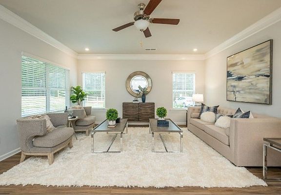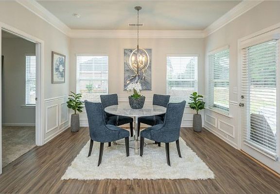 The Langford at Morgan Meadows by Smith Douglas Homes. Flexible one-level living is available in the Langford plan by Smithdouglas , punctuated by a light-filled dining area with views of the backyard and access to a covered patio. An adjacent open kitchen with central island overlooks the spacious family room. The owner's suite, tucked away at the back of the home, feels like a private sanctuary with its spa-like bath and sizable walk-in closet. A conveniently located and extra large laundry room enhances everyday living. Estimated completion date is March/April