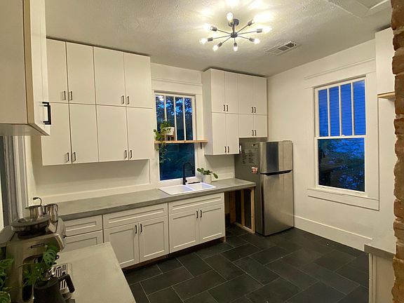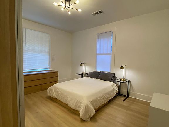 The charming home is newly renovated inside and out, including: New floors, new interior paint, new exterior paint, new kitchen, new bathrooms, new A/C, and new porch. There is a spacious front porch and a private driveway suitable for two cars. There is also a new concrete seating area in the back for additional outdoor space. The home has newly updated lighting. The dishwasher, washer, and dryer is also included.