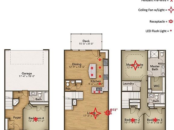 The Haydn Plan - This great 3-story rear load 2-car garage plan features a first-floor office/study with optional bedroom with full bath. Must see the spacious and open 2nd floor featuring the living room with access to a 2nd floor deck, kitchen with a large island, granite counters, and stainless-steel appliances and dining area. Upgraded flooring throughout the home. Master bedroom features a deluxe master bathroom with walk in shower.