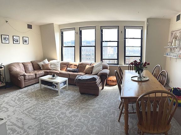 Bright, Spacious, Graduate and Professional Friendly, 1730sf, 7th Floor, Penthouse, 4BR/2BA right in the heart of Kenmore Square! This sun-filled offering features central AC, high ceilings, an open floor plan, a spacious living room, four large, equal bedrooms, a modern, fully applianced kitchen with dishwasher and disposal, two modern baths, laundry on site, and HW included! Truly a unique opportunity to have some of the BEST views in Boston! Full Broker Fee paid by LL!