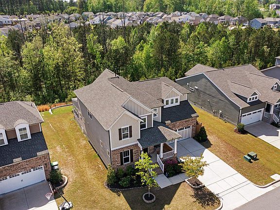 Excellent opportunity to own LIKE NEW 5 BR, 4.5 BA NE-Facing Waterstone Model home backing to woods in Sought-after Greenmoor Community. Impeccably maintained! 1st floor private Guest Suite w/ Full Bathroom plus 1/2 BA on main level. Chef's Kitchen featuring Expansive Island, High-End Appliances & Butler’s Pantry! Spacious Family Room plus Sunroom Perfect for cozying up with your Morning Coffee. Unique Organizational Area w/ Mudroom- could be used as an Office, Homework Station, Arts+Crafts! Upstairs you will retreat to the Luxurious Master Suite with Large Walk-In Closets, Spa like Bath! 3 Additional Bedrooms, 2 Full Bathrooms & Bonus Area- Great for Entertaining! Screened porch, Master tray ceiling, Crown moulding and window casings, soft close cabinets, Metal balusters, custom lighting and fans, EV Charging, Tankless water heater, 2 Tier retaining wall garden, Ext. showcase lighting, Theater setup in Bonus/Living/Porch etc.Resort like amenities include Pool, Clubhouse and Fitness cent.Stellar location with Excellent Schools, Walking distance to shops and Dining. Mins. to 40/540 and RTP! Schedule a Showing Today!