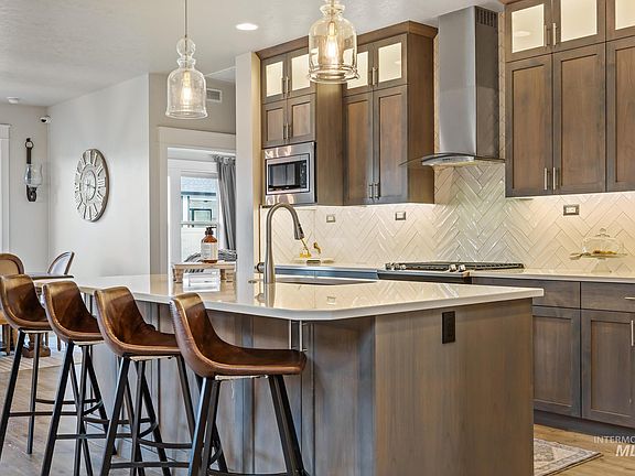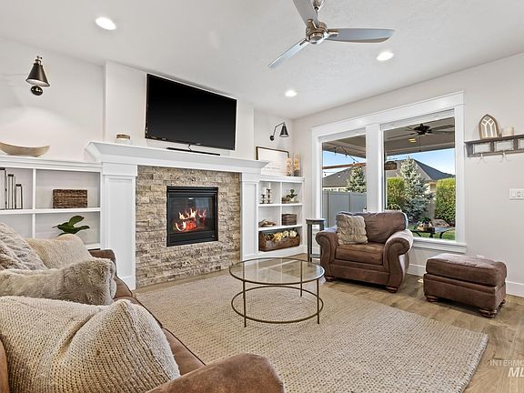 This beautifully maintained, high-end home blends comfort, style & functionality both inside & out with ample space to gather. Located in the coveted Patagonia subdivision with pools, a park & paths. Inside, the open-concept layout is ideal for entertaining. The great room features built-in shelving around a fireplace for a cozy upscale feel & the chef’s kitchen offers quartz countertops, lighted display cabinets, under-cabinet lighting, island storage & a walk-in pantry. The main-level primary suite includes backyard access, tray ceiling, large walk-in closet & spa-like bath with soaking tub & walk-in shower. Upstairs are three additional bedrooms; one of which is used as a bonus room with partial mountain views. The north-facing backyard has a covered patio, mature trees & a 12x16 shed. Additional features include 9' ceilings, designer lighting, 3-car tandem garage, gated side yard parking, tankless water heater, central vacuum, irrigation & office with a secret room & potential to be additional bedroom.