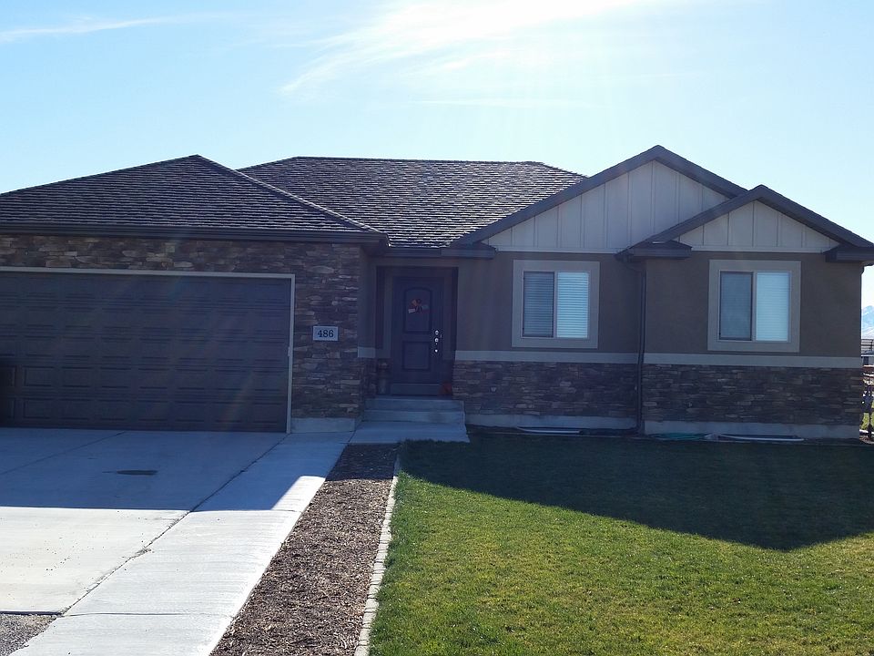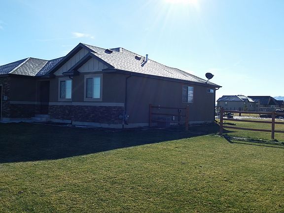Beautiful rancher on 1 acre horse property. 3 bedroom, 2 bath. Wood floors in kitchen and dining room, vaulted ceilings, granite counter tops in kitchen and bathrooms. Main level mud/laundry room. Master suite w/tiled shower & walk in closet. 1,303 square feet of unfinished basement. Covered patio off dining room w/33 x 16 surrounding concrete patio. Automated sprinkler system. Property comes w/two irrigation shares. Please feel free to call with any questions. (801)-870-9423