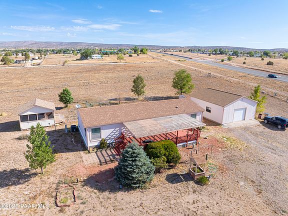 1680 SqFt 3-bedroom 2-full bath Manufactured home on 2 Acres with Screened Patio-separate building, 2 car garage detached and plenty of room to park whatever you would like.Central Air and Water Heater 2021Close to 89 for easy access. This home is on the local water company so there are no well issues.Sunsets are out of this world with views of Prescott National Forest, Mingus Mountain, Granite Mountain this is a panoramic oasis.So much room to grow on this property. If you are a contractor with equipment this might be your ideal location.