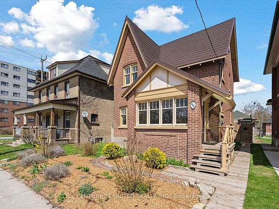 Welcome to 486 George Street South a breathtaking example of Tudor Revival architecture that is sure to impress. This two-and-a-half-storey home is rich with character, showcasing timeless craftsmanship through its solid double brick construction and beautifully restored craftsman-style trim. The main floor boasts many unique features full of character and details you truly must see to appreciate. Upstairs, you'll find two spacious bedrooms, including a primary suite with a walk-in closet that could easily be converted back into a bedroom if desired. The fully finished half-storey is sure to wow, featuring skylights, exposed brick, and endless versatility for a bedroom, studio, home office, or bonus living space. Rare for a home of this vintage, the basement offers a partially finished space with ceiling height tall enough to fully finish and add even more living area if desired. Outside, your private backyard oasis expands your living space beautifully with 80% of it covered, it's perfect for relaxing or hosting gatherings. Enjoy the bonus of a detached garage with additional storage space above, plus two extra parking spots. Ideally located just steps from the YMCA, sports facilities, parks, splash pads, medical centers, grocery stores, the farmers market, and the vibrant downtown restaurant and pub scene. This home is where timeless character meets the vibrant energy of city living at its finest.