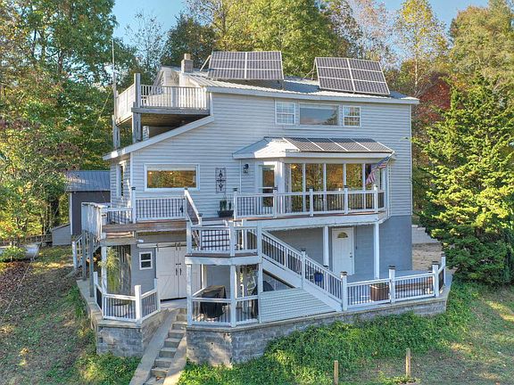 WOW! Stunning Year Round Mountain VIEW on 3.33 Private Acres. This "one owner" 3BR/3BA home is unlike any other. Living room features a wall of windows to enjoy the mountain view (beautiful sunrises). Light & bright dining area; Well appointed kitchen w/granite, ss appliances, pantry & cabinets galore. Master on main has upgraded spa-like bath w/jetted tub, massive tile shower & laundry chute. Upper level has 2BR/1BA & steps leading to an observation deck for star gazing-what a VIEW! Basement has a 2 car oversized garage, laundry, full bath, workshop/flex area & storage. Lovely gazebo, open deck and terrace patio to enjoy the outdoors. Energy efficiency at it's best with solar, wood furnace & dual fuel HVAC; private well, garden area, gated driveway, no restrictions, no HOA. So much to offer! Located between Ellijay & Blue Ridge, all paved roads, 5 min. from Highway 515 in Cherry Log.