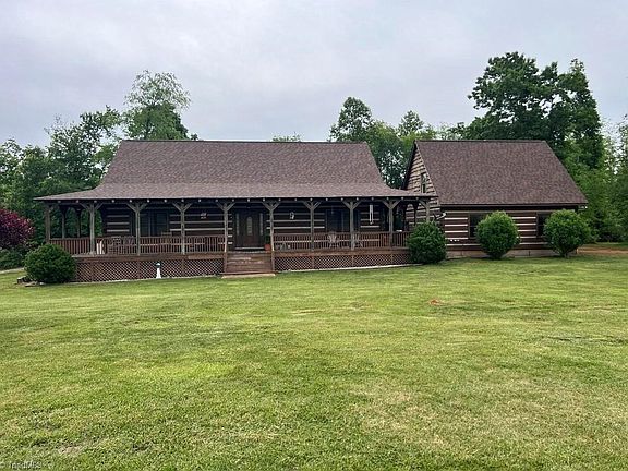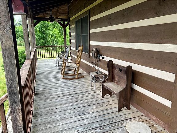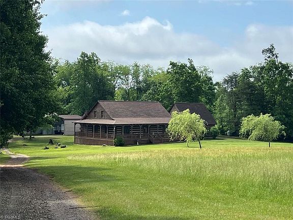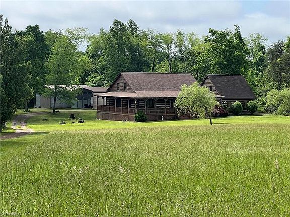 This unique & beautiful property is located in Wilkes County on 24+ acres. This log home is gorgeous. Home has FP with gas logs, heat pump and an upstairs that overlook the living room & dining room that can be used for 2 more bedrooms. A wrap around porch to relax on! If seclusion & privacy is what you are looking for, look no further! Double log garage with an apartment above with kitchenette and bath. The property has several amenities, 24X40 building with 12' ceiling with a car lift, a 35X50 pole barn with 9' ceilings and a RV shed and double carport. Make an appointment today.
