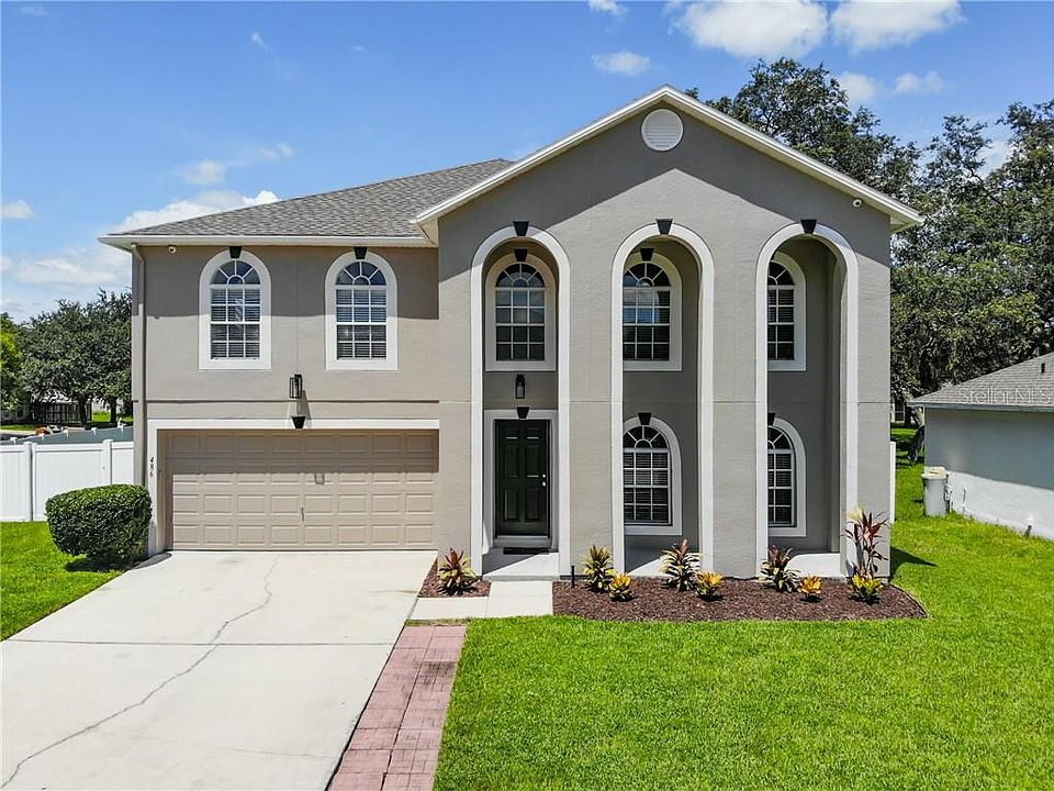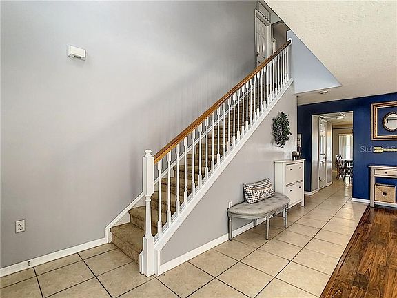 Welcome Home! This 4 bedroom, 3.5 bathroom, 2 car garage is in the quiet neighborhood of the Trails. Tile is in the wet areas and laminate in every other room. No carpet in the living areas or bedrooms! Enter into a large formal living/dining area with the wooden spindle staircase to the upstairs. The downstairs half bath and the enormous walk-in closet pantry separate the formal and casual areas. The large kitchen features Corian counters, new lighting, dual sinks, stylish tile back-splash and stainless appliances (stove 2020, dishwasher 2018). The dinette features sliding glass doors to the enclosed lanai which leads out to a nice fenced backyard with a lemon tree & 2 orange trees! The family room is massive and can fit the largest of couches. There's plenty of room for entertaining downstairs. Upstairs is an open loft which serves as a great game room, study or office. The enormous master suite goes from the front to the back of the house with an decorative tray ceiling, plenty of windows, separate his & her closets and 5 piece master bath. The dual sinks are set in a cultured marble vanity and there's a door separating the stand up shower & toilet. Bedroom 2 is a junior master suite with it's own dedicated bathroom, extra long walk-in closet and plenty of space. For bedrooms 3 & 4 there's a dedicated upstairs full bath. The exterior of the home was just painted and front landscaping was updated in 2020. New roof installed and 1st floor AC replaced in 2018. This home has some great extras such as the RingDoorbell, Nest Thermostat, and several outdoor security cameras. This is a great community for families and excellent location for public & private education. Call to schedule your appointment today!