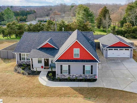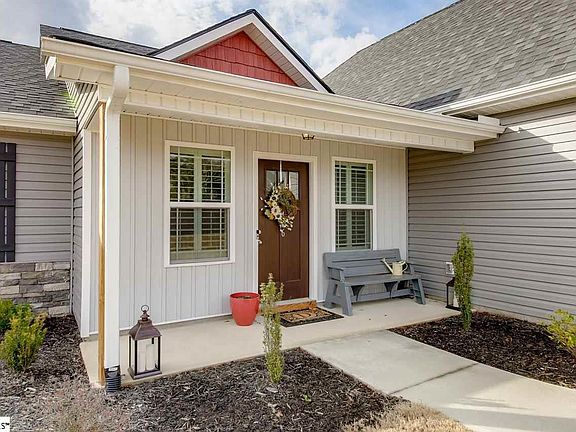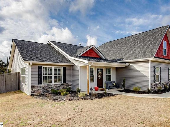 One story split floor plan home just built in 2017 offers 3 bedrooms, 2 full baths, 4 car garage and a screened in porch. This home is approximately 2,000 sq. ft. with vaulted ceilings, hardwood floors throughout den, kitchen, bedrooms and hallways. New wood plantation shutters through out the home. This open floor has many upgrades including stainless steel appliances, granite kitchen counters, tall vanities, four burner gas stove, stainless steel dishwasher and disposal, and a third generation NEST thermostat. The master suite has dual vanities, and garden tub with a separate shower. The 2nd and 3rd bedroom share a full bath. The 4th bedroom upstairs can be used as a bonus room. Additional room added to house off of kitchen that can be used as office, sitting area, or playroom. Huge fenced in backyard with brand new 16x24 deck. Come on out and take a look at this beautiful home.