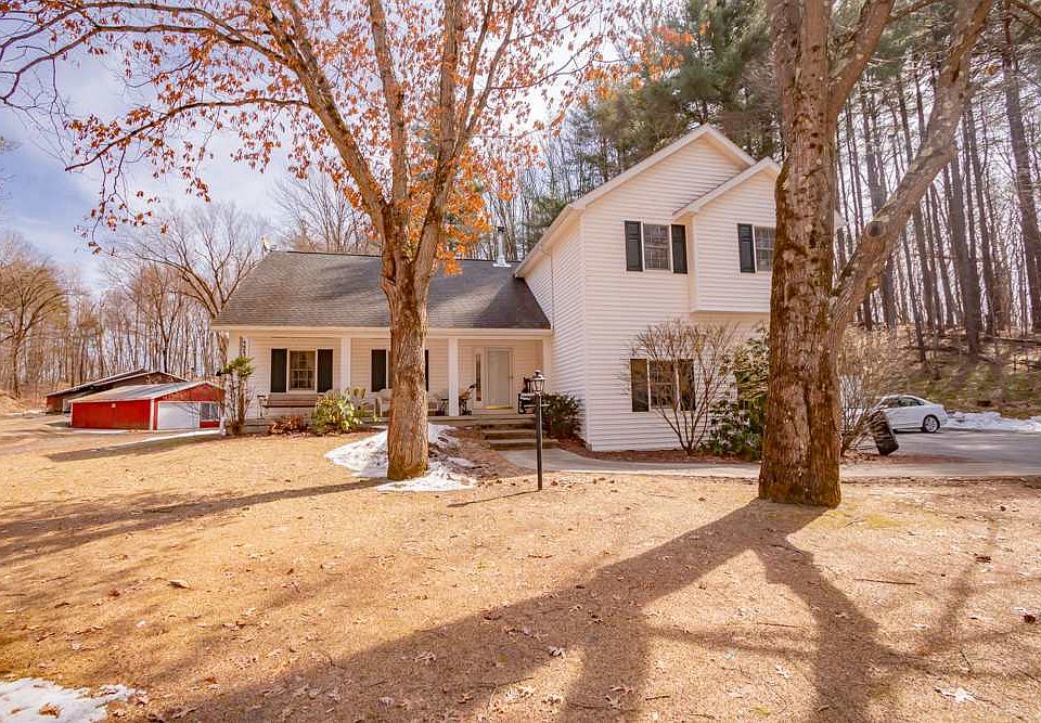 Large country home nestled among the pine trees and situated on 4 peaceful park-like acres. This home comes complete with 2 outbuildings. Home workshop is insulated with 50 amp service and wood furnace. Custom built cabinetry throughout this well constructed home featuring corian countertops, oak hardwood flooring, new carpet, SS hot water tank and roof less than 10 years old. 20' x 30' Unfinished space would be a great in-law or addt'l living space. 3 zone heat supplemented by pellet & wood stove.