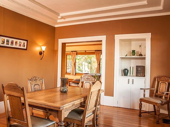 Classic light-filled Craftsman with unobstructed views of the East Bay hills. This 3 bdrm/2 bath home has orig. hardwood floors, coved ceilings, detailed windows, formal dining room, eat-in kitchen, enclosed sun room, 2 decks & versatile downstairs space/au pair leading out to a sizable backyard.