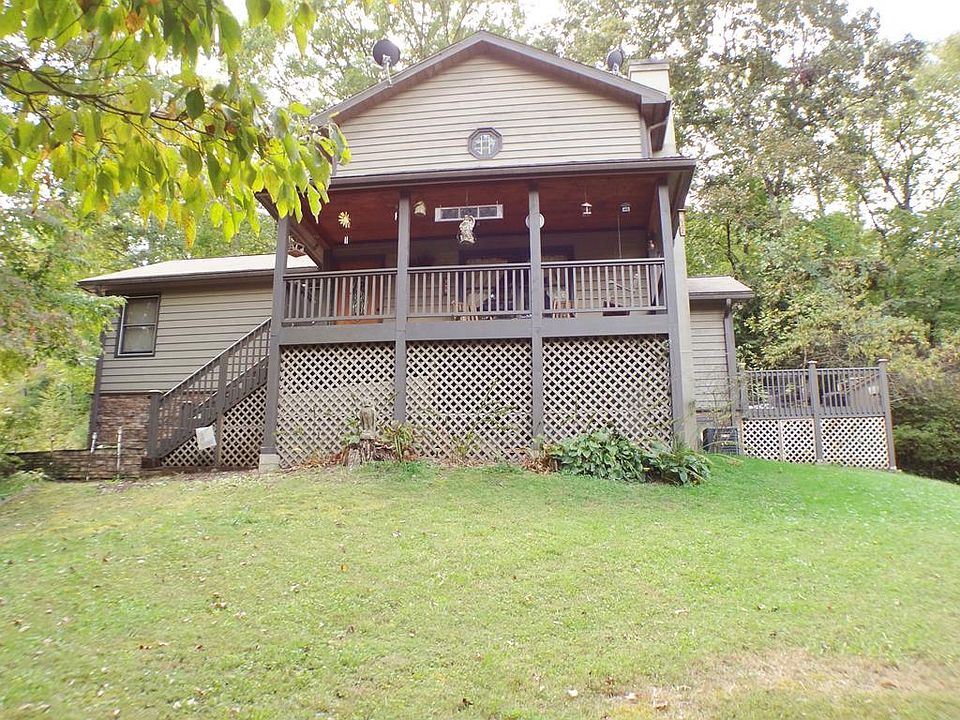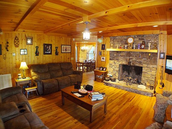 This 3 bedroom 4 bath home is tucked away in the woods with lots of privacy on the 4.18 acres. Lots of detail was put into the construction of the home with extra touches like stone retainer walls and walk ways. Relax on the covered porch and enjoy the peaceful setting with your favorite people and the wildlife that frequently visits. Step inside and see all the extra touches with pine tounge 'n' groove wood ceilings and walls with pine beams and the stacked stone fireplace. The master bedroom is on the main level with two bedrooms and a bath up stairs. The lower level has a large office space, half bath and a large laundry room with an extra room for closet space, storage or ironing room. Half of the downstairs is a garage with a workshop area. Plenty of parking is available for you to invite all your friends for a cook out on the back deck. Come see this one if you like privacy with convenience to shopping and restaurants.