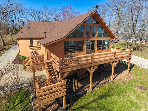 Reduced!! Amazing Turn-Key Waterfront Home! This one-owner home has been well cared for, maintained meticulously and loved in many ways. A newer roof, fresh paint, updated countertops, new ground source furnace, central air, and flooring are just some of the upgrades. As you enter you will immediately notice the window wall allowing in plenty of natural light. Primary bedroom on the main level with 2 additional bedrooms on the lower. A wonderful view of the water is one of its best features along with an open-concept great for entertaining. On cool nights you can relax in front of the fireplace. This home is ready for the lake in the summer and welcoming in the winter. Walk out onto the deck, sit back and relax and enjoy all of the lake activity. A Garage on the upper and on the lower level allow ultimate convenience and plenty of storage. An expandable attic gives an opportunity for additional space. The covered boat dock has a lift and swim deck. This home is a MUST -SEE!