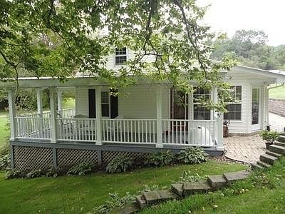 Charming Two Story remodeled Farmhouse with wrap around Porch on 60 acres.Living Room with Gas Log Fireplace and Soap Stone Wood Stove.Formal Dining Room.Remodeled Kitchen with new Cabinets and Corian Counters.Master Bedroom on Enter Level,3 more Bedrooms upstairs and office.Land is partially wooded with mature timber and open fields for pasture with fencing, barn and other Out Buildings.