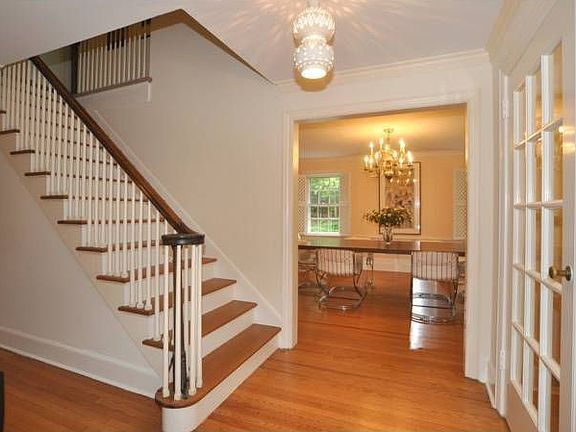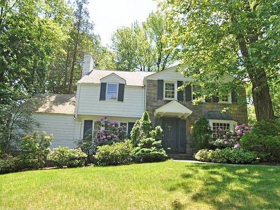 Classically "All American" in style, this picture-perfect center hall Colonial, with its pristine stone and clapboard facade, enjoys clean traditional lines and the gracious floor plan one would expect to find upon entering. An open foyer with sparkling hardwood floors and crown moldings set the tone for its warm, welcoming rooms. The living room features a center fireplace with a Colonial mantel, while a formal dining room has paneled wainscoting and distinctive latticed shutters. Rustic exposed ceiling beams in a country-style kitchen add character, with custom cabinetry, breakfast peninsula and door to the yard. The family room also has exposed beams that span its soaring ceilng, with a bank of oversized picture windows that take in expansive back yard vistas. A delightful powder room with a boutique pedestal sink adds cachet. A back staircase leads to the second floor where you will find all new baths, plus generously-sized second-floor bedrooms that offer a combination of abundant closets, built-in bookcases and/or window seats. A sumptuous master bedroom suite with dressing room and built-in drawers includes a newly renovated master bath with granite-topped vanity and oversized sink, plus an oversized frameless shower over tub. A spacious private third floor bedroom with tray ceiling, a cedar closet and new full bath are ideal for extra guests, and adds versatility to the home. There's plenty of extra space for recreation on the unfinished lower level (including a workshop, large storage room, laundry area and a half bath), offering limitless expansion possibilities for the creative homebuyer. Attractive extras include ample parking for five cars with Belgian block driveway curbing, alarm and underground sprinkler systems, plus newer roof, heating and air conditioning systems. Location is a bonus for this home, privately set on a serene neighborhood street framed by mature shade trees, convenient to the Jitney stop for easy New York City commuting...a must see!