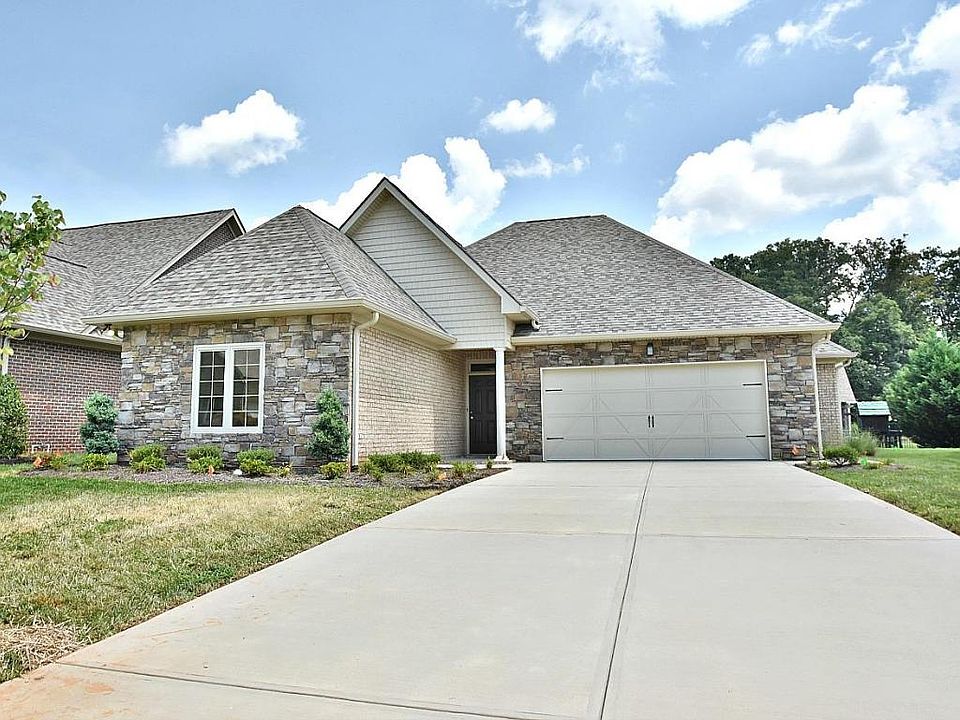 NEW CONSTRUCTION IN ACADIA VILLAS - All brick ranch home with split bedroom floor plan and bonus upstairs. Vaulted great room has gas fireplace and hand-scraped hardwoods that open to dining area and gourmet kitchen featuring an island with quartz countertops, SS appliances and an eat-in breakfast room. Master suite has trey ceiling, walk-in tile shower, & large walk-in closet. Enjoy evenings on your covered patio overlooking your professionally landscaped yard (lawn maintenance included). **Ready to Move In!! ** Seller to close at Admiral Title.