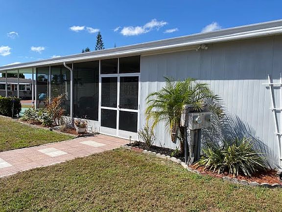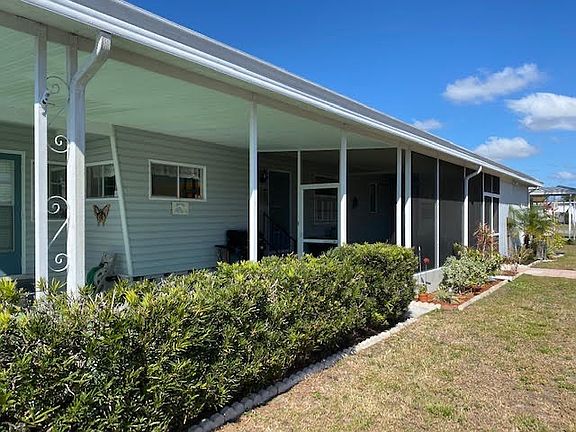 Don't miss seeing this very well-maintained TURNKEY 2 BR 2 BA manufactured home in popular Colony Cove! This home boasts beautiful landscaping and unique features including two corner built-ins in the dining area and more built-in shelves in the living area. The bright white kitchen has white appliances, a breakfast area with stools for seating, and beautiful "wood-like" vinyl flooring. The living room is a very nice size and is an open concept to the dining area with a peek-through to the kitchen. Large master bedroom with an ample-sized en-suite bath and a garden tub! In the master bedroom, there is a corner area that serves as an office area. There is a second bedroom with a double closet and overhead ceiling fan with a large full bath right next to it. It has central air throughout and comes completely furnished. The driveway has room for two cars and there is an attached storage shed with a washer/dryer and plenty of room for your odds and ends. The lot rent is $879.41 and includes water, lawn care, sewer and trash, and all the amenities of the park. Colony Cove is a 55+ community with 5 clubhouses, 5 pools, a fitness room, library, game room, billiard room, pavilion, and shuffleboard courts. Pet-friendly offering a large dog park with views of the Manatee River. In addition, this park also has a private boat dock with fishing along with a marina with Gulf access. Close to restaurants and shopping areas making it convenient for seasonal and full-time residents. Please do not miss this opportunity, this could be your dream home! All listing information is deemed reliable but not guaranteed and should be independently verified through personal inspection by appropriate professionals. Integrity Mobile Home Sales cannot guarantee or warrant the accuracy of this information, measurements or condition of any property. Measurements are approximate.Lot rent subject to change.