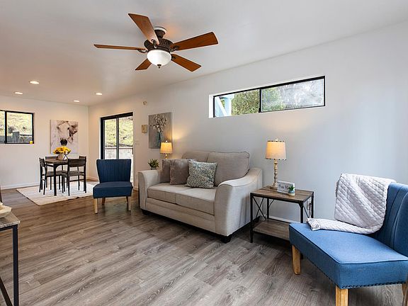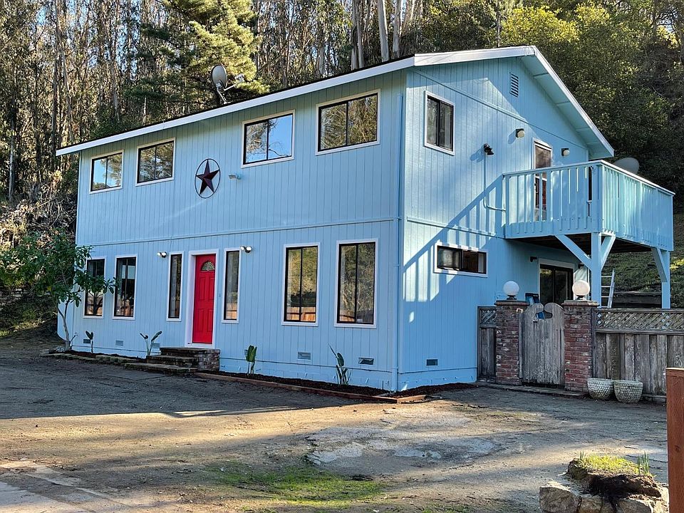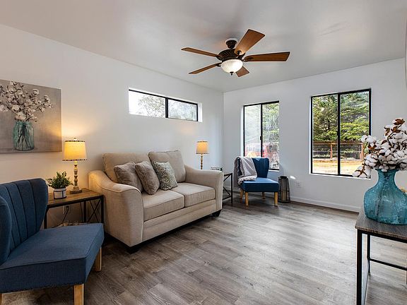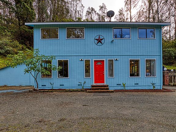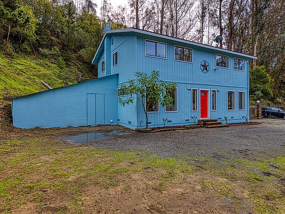 Country Charm & Privacy abound in this 3 bedroom 2.5 bath 1924 sq. ft. home situated on nearly 1.4 acres. Large windows & skylights shower the home w natural sunlight & forested beauty. Great separation of space w separate Living & Family rooms, yet open floor concept living between Kitchen, Living room & Dining areas allows for large gathering space. Welcome guests through the formal entry and enjoy easy access to the outside via sliding doors to the inviting brick patio or cozy up to the rustic pellet stove in the separate Living room. 3 spacious bedrooms & 2 full baths upstairs, inclusive of the Master suite w double closets & access to the outside via second level decking. Laundry room & 1/2 bath downstairs w/access to carport. The expansive front yard includes a fenced area & poultry coop, as well as plenty of space for all your landscaping & gardening dreams. Storybook pitched roof shed in the backyard could be an office, playhouse, she-shed, art studio or simply extra storage.
