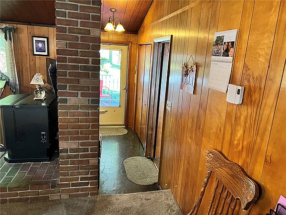 Country living, All Brick Rancher on 1.39 acres with a Million $$ view, Beautiful wooded lot just outside of Jamestown PA, Close to Pymatuning lake and recreation, 1960s Open concept Living room Dining and kitchen, Cathedral ceiling with beams, large family room with a full bath, Main floor laundry, Covered front Porch, closed in back porch with sliding doors that looks out over the wooded lot, Storage shed, 2 car Attached garage