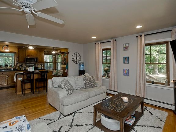 This timeless New England-style Cape, hitting the market for the first time, offers 4 bedrooms and 1 full bath. The open kitchen and living room create a welcoming space, with granite countertops, a center island, and stainless steel appliances enhancing the kitchen. The bay window adds natural lighting to the space. With 2 bedrooms upstairs and 2 downstairs, the home offers great flexibility for various living arrangements. The highlight may be the exterior, boasting an in-ground pool, abundant entertainment space, and a sprawling 2.9-acre lot. The basement includes a workshop, laundry area, and a convenient half bath.