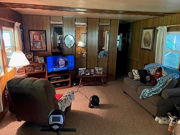 Very well maintained Mobile home sitting on .73 acres with 20x20 Barn. 2 bedrooms and 1 full bath. Living room plus a sitting area with fireplace. Eat in kitchen. Large primary bedroom with addition bedroom. This company makes no warranty or representations about the contents of this data. It is the responsibility of the parties looking at the property to satisfy. themselves as to accuracy of this information. Taxes were obtained from the local assessor and the taxes could change for the buyer after a closed transaction.