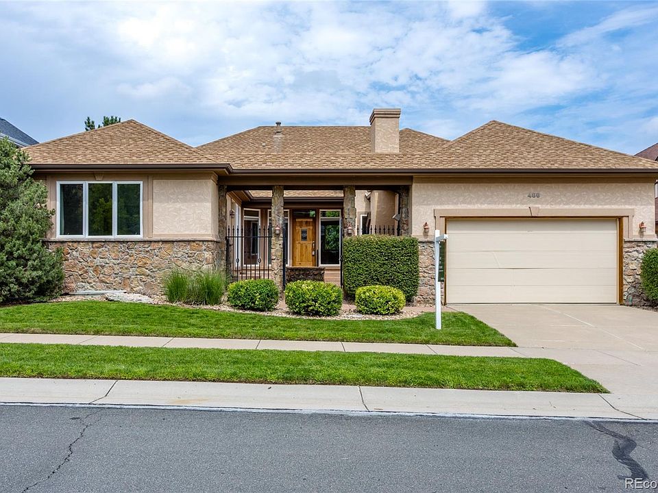 Perched atop the Green Mountain Vistas neighborhood in Lakewood find this turnkey desirable ranch floor plan. Refreshed, light and bright, a welcoming exterior courtyard greets you. Enjoy the outdoor fireplace in this special space ushering you to the front door. Open the front door to an open floorpan with expansive ceilings and flooded with natural light. The ease of the living space allows you to travel seamlessly between the living room, dining room and kitchen. Pull up a stool to the kitchen island for an informal meal or be seated at the breakfast table. Formal gatherings can take place at the dining room nearby. The kitchen features tons of storage and counter space and a sink that faces the fenced outdoor space with concrete patio and ample grass yard. Travel to one wing of the home to find an office (could be a bedroom) with built-in bookshelves and a closet and a guest bedroom with 3/4 bath in between these spaces. The main floor primary on its own wing offers a large sanctuary with space for a sitting area, a five piece bath with corner soaking tub and large walk-in closet. Downstairs you will find what your imagination allows, a blank slate to create another level of luxury or to keep as a large storage space. Enjoy unparalleled access to major routes like 6th Avenue, C-470, I-70, and I-25, putting the best of the city just minutes away while still feeling worlds apart in this tranquil setting. Hurry, these homes don't come to market often.