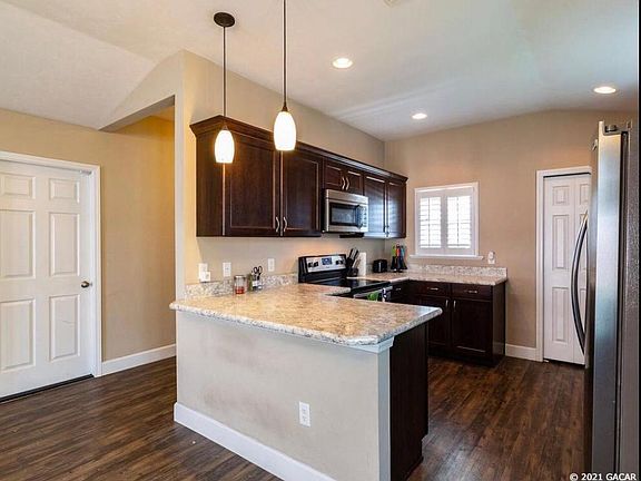 In the Heart of Newberry, Pride of Ownership & Love is felt when you walk in this adorable Immaculately kept home in Oak View Village. The Home features 3 bedroom 2 baths fully upgraded with plank flooring, granite countertops , cherry oak kitchen cabinets, Full of Natural light and so Bright. Large walk in closet & vaulted ceilings make this house perfect for young families. Two car garage, back patio and privacy fenced back yard. Kitchen has wood cabinets and appliances including refrigerator with ice maker, electric range, a built-in microwave range hood, a dishwasher and a garbage disposal. Laundry room has capacity for a full size washer and dryer. Pre-wired for cable TV and alarm systems. $2,000 per month for 12 month lease. 1st and last month due upon signing. Shorter lease terms available. No smoking allowed inside the home. Pet Policy: Cats or dogs less than 25 lbs with refundable pet fee per pet and monthly pet rent. Maximum of 2 pets. Owner pays pest control. Tenant responsible for all utilities and back lawn maintenance. HOA maintains front and side lawn. Credit score less than 640 may require additional deposit.
