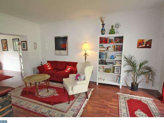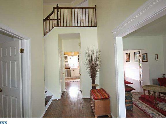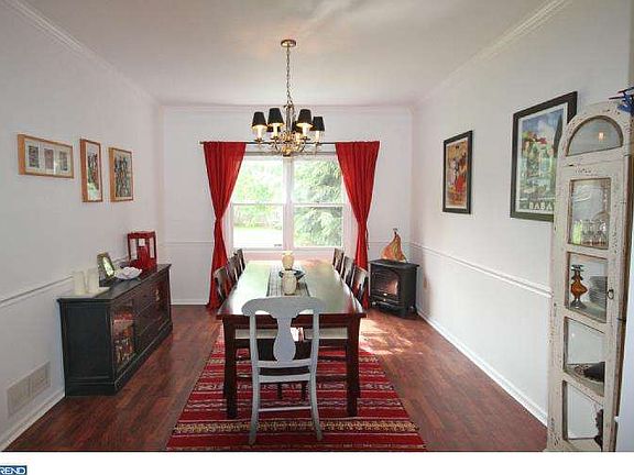 Beautifully customized, Camelot Model in Collegeville Glen built by the Culter Group. The Camelot Model boasts 9FT ceilings and a 2 story foyer entry with hardwood floors. In addition to the 2 story foyer, the 1st Floor consists of a Living Room, Dining Room, Den and Kitchen with laminated wood floors, a family room with a brick fireplace and berber carpet, a half bath and a spacious laundry room. The Kitchen has a backsplash with tiles imported from Morocco and a special breakfast area surrounded by bay windows and a French door to the deck. The 2nd floor has a Master Suite, three additional bedrooms with high end laminated wood floors and a and hall bath. The Master suite features cathedral ceilings walk in closet, regular closets and a master bath with a soaking tub and shower stall. Both baths are tiled and have skylights. The basement has a larger beautifully finished part and a smaller utility room. The finished part features berber carpet and several finished areas for the family and friends.
