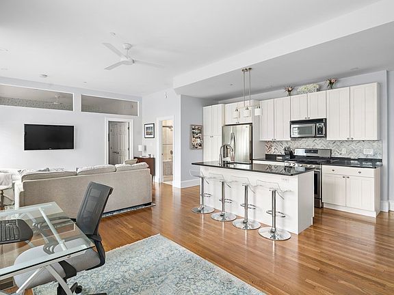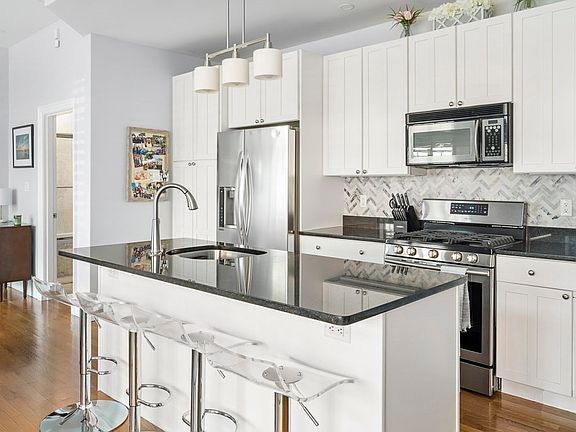 Located on picturesque Shawmut Ave, lined with trees and brick-paved sidewalks, 486 Shawmut Unit 2 is quintessential South End living. This 1 bed, 1 bath home spans nearly 700 square feet and lives larger with its open concept living, dining, and kitchen space. Natural light is abundant — a wall of windows sprawl all the way to the ceiling, creating a bright and airy home. The kitchen features newly installed herringbone backsplash, stainless steel appliances, gas stovetop, and an island big enough to seat four. The spacious bedroom boasts custom closets and built-ins, and a high-end wallpapered accent wall. Additional features include: central AC, hardwood floors throughout, and in-unit laundry. Don’t miss your opportunity to live the South End life.