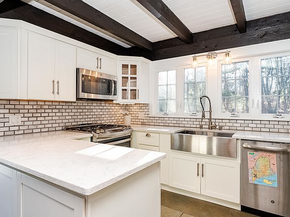 Come experience vacation land in this Cape Neddick contemporary home. You will love your daily drive up and down Shore Road as much as you'll love this house! The main house offers three bedroom and two full baths. Walk into an open concept kitchen and dining area with ceiling height that reaches two floors. A custom kitchen that features stainless steel appliances, quartz and tile back splash while offers a slightly rustic look with exposed beams. A large dining alcove. Off the kitchen/dining through a set of french doors you'll find a massive living room lined with a wall of windows offering an abundance of natural light. Also featured on the first floor is the primary bedroom with a recently updated bathroom. Take the curved stair case up to the lofted second floor that leads to two bedrooms and a full bath. The lower level features a privately entered one bedroom ADU apartment with a full size kitchen and 3/4 bath. Perfect opportunity for rental income or an in-law/guest suite! Enjoy your recently redone, over sized (700sqft) deck that spans the depth of the home. Off the deck you will find a perfectly manicured landscape and a fire pit. You'll love the proximity to Ogunquit, the Cliff House, Cape Neddick Country Club and all the York beaches!