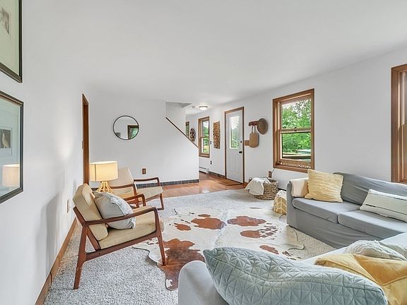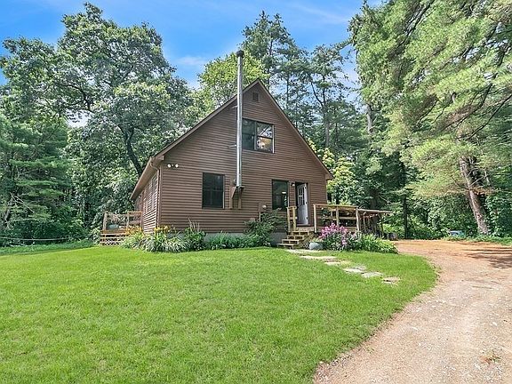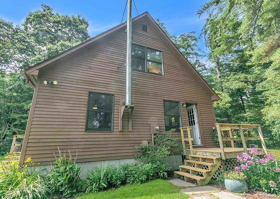 **NEW PRICE** Legal Duplex! This sweet, secluded 4 bedroom, 3 bath Cape is tucked away off the beaten path, but just minutes to downtown Amherst, UMASS and shopping on Route 9. The home features a spacious kitchen, light-filled living room, downstairs office, and a two-story screened-in porch. Upstairs is a tranquil, primary bedroom with a sleeping porch and across the hallway an additional bedroom. Downstairs is a roomy one-bedroom apartment. Unfinished basement includes laundry, utilities and tons of storage. Powerful, commercial-grade well provides future income possibilities! Recent upgrades include remodeled bathrooms (one with a luxurious 4x6 soaking tub), a new roof (2023), fresh paint, new entry decks and new kitchen cabinets. Sitting on 2.7 acres and abutting conservation land with direct access to great gentle hiking/running trails, this home is a nature and wildlife lover's dream!