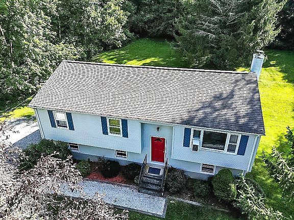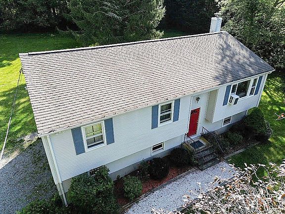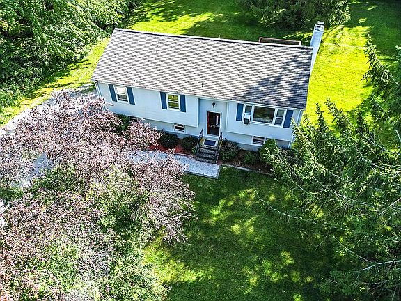 Beautiful Raised Ranch house on idyllic 1.6 acre lot. The long rustic freshly paved crushed stone driveway leads past 10 hybrid tea roses of different colors to the walkway. Inside are three lovely bedrooms on the upper level with a remodeled kitchen and bathroom. Charming dining and living room with panoramic views of the lovely green lawn. Yard is well maintained with Magical, Jonathan Green four step process and Black Beauty Ultra seed. Three more roses grace the front of the house. The dining room slider door opens to a large deck perfect for BBQs and entertaining friends and family. The downstairs is currently a music room and library but can be used for an office or family room. Spacious two car garage and laundry room adjoins this for cars and equipment. You will enjoy complete privacy and tranquility on this enchanting romantic/secluded property that has easy access to Hebron Center....route 2 and route 6. Call to schedule a private showing. FSBO....no agents please.