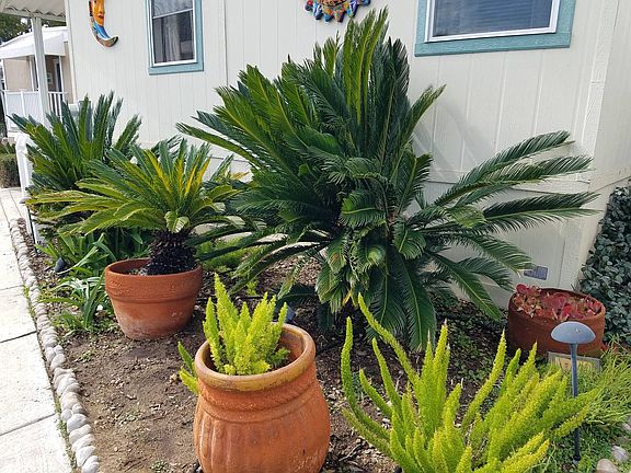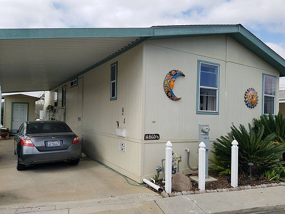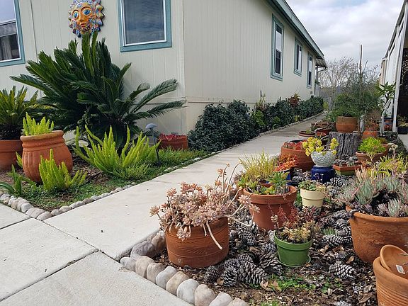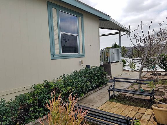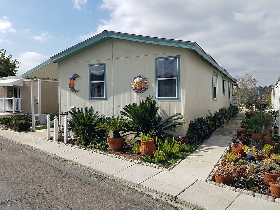 This Lovely 2005 Manufactured VIEW home is located in the Cliffs Senior Mobile Home Park. Situated near the clubhouse, library & pool, it's just a short level walk to your favorite activity. Beautifully landscaped with sego palms, ferns, succulents, fig, pine & peach trees. Inviting areas for outdoor entertaining include the deck, bench seating and patio areas. The full width covered deck has views to the North and West overlooking Mission Gorge, Admiral Baker Golf Course, and the SD River. Plan to watch sunsets from inside or outside your home! This home features an open floor plan with vaulted ceilings, three ceiling fans, vinyl plank flooring and central AC. The spacious kitchen has a sit-down counter and lots of cabinets. Lovely window treatments in every room, master bedroom has a walk-in closet, and step in shower. Laundry room has storage cabinets with full size washer & dryer. (LBJ8256)
