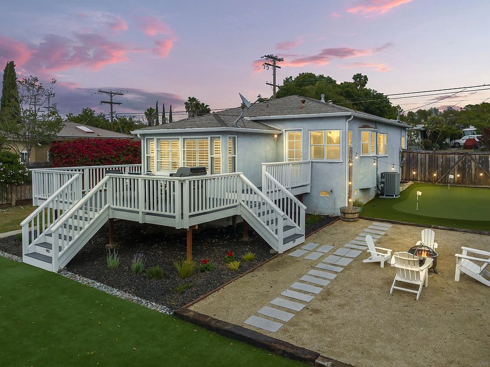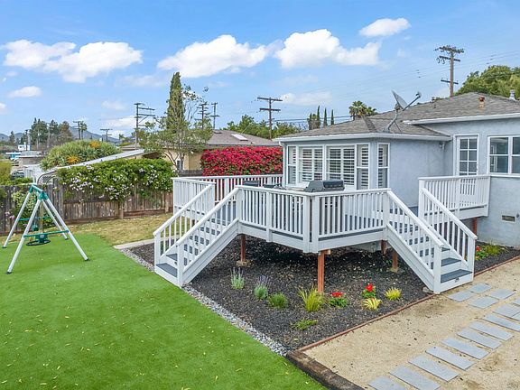 This charming and cozy detached home sits on almost a 1/4 acre flat usable lot. Bright and open living area, remodeled kitchen and large bedrooms. Huge backyard includes a fire pit circle, putting green and generous grass area. Completely rebuilt extensive Trex deck with access from the kitchen and master bedroom is perfect for indoor/outdoor enjoyment and entertainment. Front yard is nicely manicured with artificial turf, plants and walking paths. The community is peaceful, private and well-maintained. New central heating and air conditioning, newer appliances, washer and dryer, refrigerator, plantation shutters and hardwood floors. Easy access to major freeways--I-8 I-15, I-125, and Hwy 94.