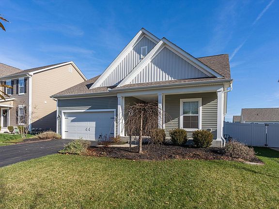 PICTURE PERFECT in popular Minerva Park! This 3 bedroom, 2 bathroom ranch offers a LIGHT, BRIGHT, OPEN floor plan perfect for entertaining. Enjoy views of the community pond from the front porch! Oversized great room with laminate wood flooring & gas log fireplace opens to the center island kitchen feat: 42'' cabinets, ss appl, quartz counters, upgraded fixtures and access to the fenced lot. Primary bedroom w/en-suite full bathroom offering double vanity, walk-in shower and closet. 2 additional bedrooms w/ample closet space and access to an additional full bathroom. First floor laundry - washer/dryer convey. Massive full basement with 3rd bath rough in ready to be finished. 2 car attached garage w/opener. Excellent location with quick access to Easton, airport and freeways! WOW!
