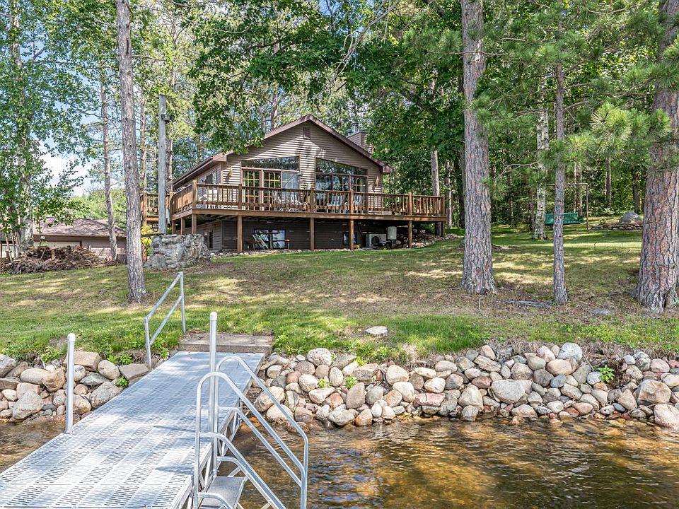 First time on the market for this well cared for 3BR/2BA year round house on Currie Lake. If you're looking for peace and quiet, this is it. The house offers open concept living with 2 sets of patio doors leading the lakeside deck - which has plenty of room for entertaining. You will love the WB fireplace in the LR. There are 2 bedrooms & a full bath on the main floor. The walkout LL has a nice family room with a free standing gas stove, a bedroom, bathroom plus laundry/utility area. The 3+ stall garage offers plenty of storage - there's a garden shed & a portable carport. Level approach to the rip rap shoreline with southern exposure & a private boat launch (pier & boat lift included). Currie Lake is a recreational lake & per DNR site is 95AC with depths of 14' & has panfish, bass and walleye. Amenities/updates include: whole house back up generator, 2 ductless wall heat & AC units, point well for watering, garage roof (09'), owned water softener and LP tank. Must see to appreciate!