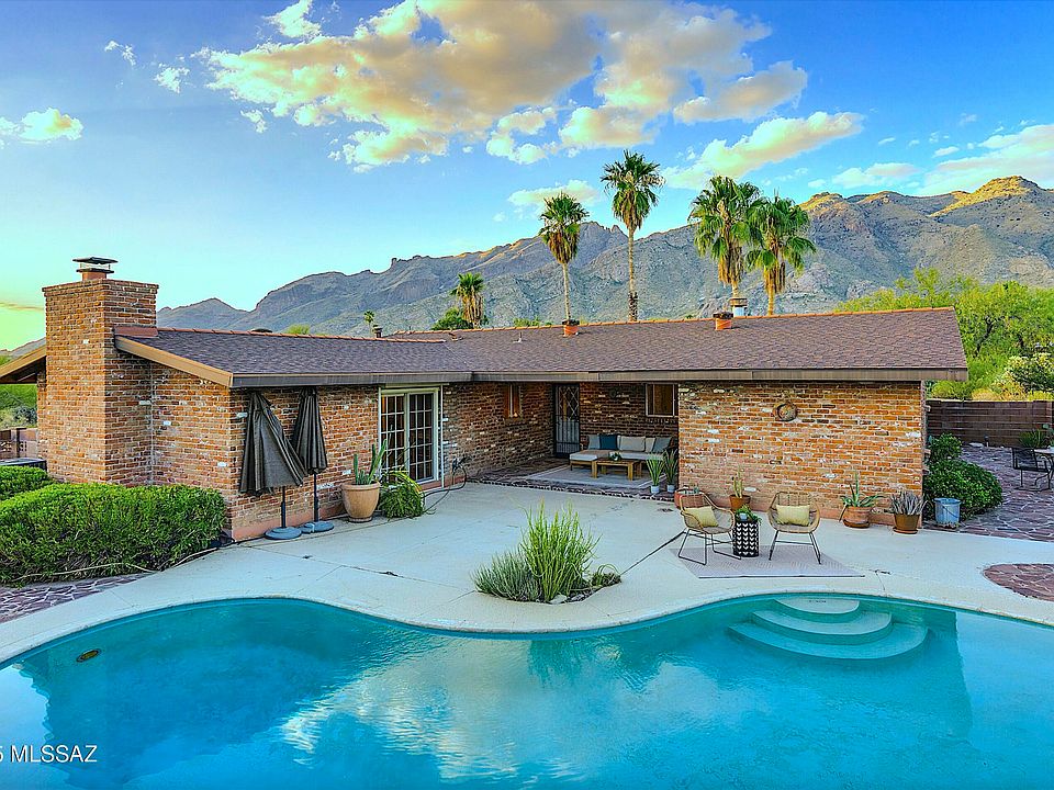 Location! Location! Location! Wonderful 2,125 sqft 3 bed, 2 bath home in highly desired Skyline Bel Air Estates. Living room w/ view of the Catalina Mtns & family room w/fireplace off of kitchen. Open floorplan w/ a wonderful kitchen that includes stainless steel Cafe appliances, gas cooktop, stunning cabinetry & plenty of counter space. Sliding doors lead to serene custom landscaped backyard w/ covered patio & inviting pool. Generously sized primary en suite w/ lg closets & sitting area. Laundry room w/ washer/dryer, sink & cabinets for storage. 2-car garage that includes lg storage closets. Neighborhood boasts a recreation center w/ junior Olympic pool, basketball court & recently updated tennis courts. Great location close to shopping, dining, hiking & biking. Dist 16 Schools.