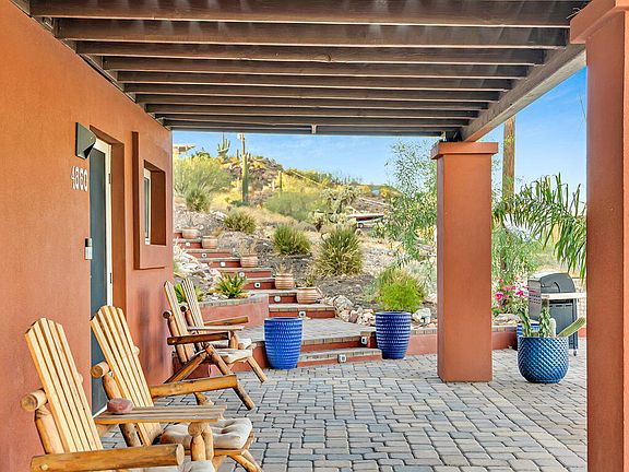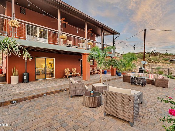Nestled against the breathtaking backdrop of the Superstition Mountains, this fully remodeled 2 bed, 2 bath artist bungalow offers a retreat to unparalleled views and luxurious living. Every detail has been meticulously crafted, ensuring a seamless blend of comfort & style. The two spacious patios are an entertainer's delight. They invite gatherings under the desert sky, while inside, a downstairs oversized walk-in shower features an extraordinarily large rain head that provides a spa-like experience. The 2nd level master bedroom reaches out to dawn with a sunrise view cresting the mountain backdrop. Situated at just over 1900 ft elevation, on over an acre of tranquil desert space you are sure to experience the most majestic Arizona sunsets that spans the views to the south.