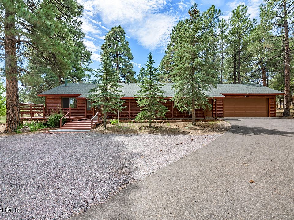 **FULLY RENNOVATED** This stunning property is a log-sided home that offers a comfortable and relaxing living experience with Mountain Views in the front and back! One of the standout features of this property is it's very own private access gate to thousands of acres of the Coconino National Forest, truly a horse lover's paradise. Imagine waking up to the serene beauty of the forest right in your backyard and enjoying daily visits of diverse wild life, the peace and tranquility it offers is amazing! The home itself has been beautifully updated making it even more attractive with a new kitchen, new vinyl flooring, new carpet, and new wood trim throughout, giving it a fresh and modern feel while still maintaining its country charm! The garage is insulated with force air gas! Need storage? This property has it all with an over sized attached garage AND a detached 24'' x 24' workshop for all your tools, toys, and more! Now, let's talk about the potential for income generation! This home offers both a peaceful retreat and a promising investment opportunity. Don't miss out on the chance to own an exceptional property that rarely come on the market!