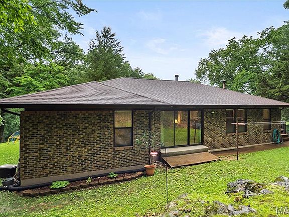 Situated on a beautiful wooded private lot, this spacious brick ranch is ready for a new owner to move in and enjoy! Over 2000 sq/ft of main floor living space. A gorgeous updated kitchen includes COREtec luxury vinyl flooring, tiled subway backsplash, updated electric range & soft close cabinetry. There is a large living room and family room which is perfect for entertaining and/or play room or even a guest 4th bedroom. Primary bedroom includes a spacious walk in closet. 2022 installed a maintenance free deck with aluminum railings! HVAC/heat pump under 10 yrs old. New roof in 2022! Updated breakfast room sliding door to deck. 7 ceiling fans throughout the home. Basement includes storage shelving, desk/office area and/or shop area. Enjoy the benefit of living in a private location and still be close to HWY access. 6 minutes to Murphy Elementary, 10 minutes to HWY 270. GREAT home, GREAT lot, GREAT location.