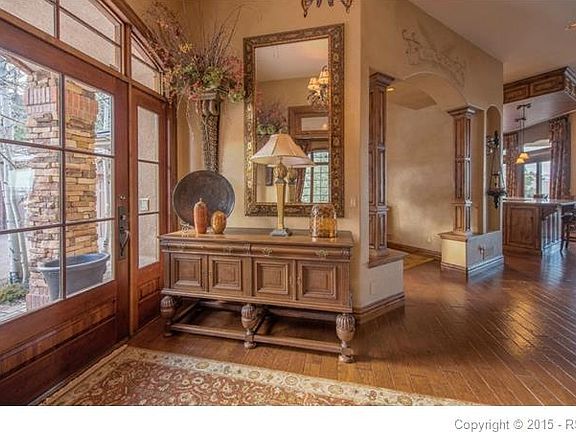 Prepare to be amazed by this Broadmoor Resort/D12, Parade of Homes Award winner. No expense spared on stunning alder wood finishes, wide plank wood floors, hand hewn doors,elegant sweeping floating staircase and hand forged hardware.Enjoy fabulous city lights from wrap around deck while tucked away in your private mountain setting. A cooks delight, the gourmet kitchen offers every amenity.Granite, custom cabinetry, wolf double range/oven w 5 burner gas,Sub zero refrigerator,wine frig,veggie sink and walk in pantry.