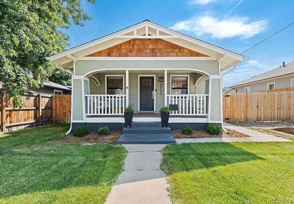 Fully remodeled 3-bed, 2-bath home that blends 1920s charm with modern luxury. Featuring 1,336 finished sq ft, the home showcases real hardwood floors, quartz countertops, stainless steel appliances, recessed lighting, and abundant natural light throughout. Both bathrooms are fully updated with fresh tile and fixtures. Major systems including HVAC, roof, plumbing, and electrical were all replaced in 2024. The landscaped front and back yards include new sod, an irrigation system, a spacious patio, and a covered front porch. Enjoy ample off-street parking with a detached 1-car garage (insulated with power, lighting, and drywall—ideal for a gym or studio) plus four total driveway spaces. Located just ½ mile to Willis Case Golf Course, ? mile to Regis University, and within walking distance to Tennyson Street’s vibrant dining and shopping district. Move-in ready and truly turnkey.