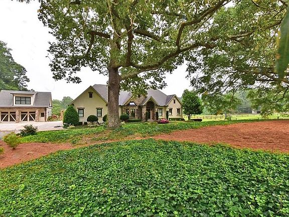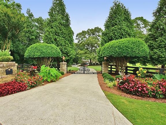 Entertainer's Paradise! Immaculately renovated estate on fenced 6.5 acres! Resort style living at its best starts as soon as you enter thru the gate with the professionally landscaped grounds that lead to the grand front door. You'll love the Gourmet kitchen with stunning Quartz counter tops, custom white cabinetry, extra large farmhouse sink, large pantry area, high end appliances; Sub Zero refrigerator, Wolf range, Bosch dishwasher, large island, breakfast bar, eat-in kitchen and Keeping Room with double sided fireplace that overlooks the spacious Family Room, large covered veranda that is perfect for entertaining and is accessible from kitchen & family room offers a show stopping view! Beautiful Master Suite & Retreat on main with a spa-like Master bath w/ double vanities, beautiful tile shower and large walk-in closet. Upstairs boast 3 large bedrooms, 2 full baths and spacious loft. Finished Terrace level w/ Billiard Room, Bar, Family Room, Home Gym, Bedroom and Full Bath. The impeccably landscaped grounds includes heated in-ground salted pool with spa, large open pool house with full-kitchen, dining/living area, fireplace, bathroom, outdoor shower for year-round enjoyment. Property also has a basketball court, baseball field, soccer field, in-ground trampoline, your own 3-hole golf course and tree house that overlooks Settingdown Creek, raised bed garden & chicken coop. Home has 2-car garage, large parking pad and an additional detached 2-car garage with finished loft. THIS HOME HAS IT ALL!! This is an exceptional opportunity and an amazing property! Excellent Forsyth County Schools! This is a MUST SEE!