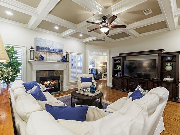 Welcome to this stunning 4 bedroom, 2 1/2 bath brick home in a private, gated community with a view of the 12th fairway! This property combines comfort, style and functionality. Step inside to discover two expansive living areas - the living room with coffered ceiling and gas fireplace with remote start as well as a family room located off the kitchen area. There is a formal dining room as along with a casual dining space ideal for relaxed gatherings. The gourmet kitchen is a chef's masterpiece showcasing a central island, serving bar, granite countertops and newer stainless steel appliances. The split bedroom plan offers privacy. The primary suite includes two walk in closets with custom cabinets, 2 vanities, full tile shower and jetted soaking tub for a true retreat experience. The other bedrooms are spacious and offer exceptional closet space. All rooms are enhanced by Plantation Shutters. No carpet anywhere - just hardwood and tile. Enjoy year-round enjoyment of the screened/all season room with vinyl windows or step outside to relax by the sparking 16 x 38 pool with sun ledge and a new 10 x 12 Douglas fir pergola. Separate cook out area with built in cabinets and natural stone patio. The backyard is enclosed by black aluminum fencing. This home blends elegance and practicality in a beautiful golf course setting. A perfect place to live, relax and entertain.