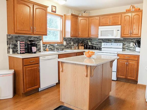 Fenced-in backyard, finished lower level, first floor laundry...welcome to this fantastic 7-year-new 3 bedroom, 2 full bath ranch! The fully applianced kitchen has a center island with solid surface countertop, tile backsplash and is open to the dining room. Large formal living room has lots of natural light. The master bedroom has direct access to a roomy full bath. There are two additional bedrooms and a full bath with laundry hookup - washer and dryer included! Huge 34x13 finished rec room in the walkout lower level PLUS a ton of storage space! 2-car attached garage, too. Enjoy the fully fenced backyard with patio and storage shed. Come see all this home has to offer!