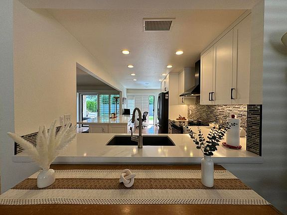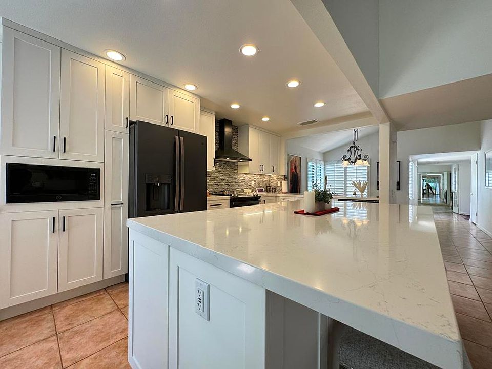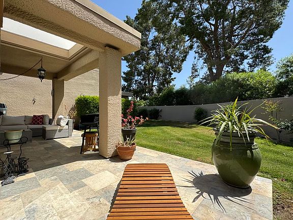 This one-of-a-kind 2 bedroom, 2 bathroom condo in the heart of South Palm Desert in the Sommerset community features a gorgeously REMODELED kitchen that highlights the quartz countertops, custom-made cabinets, center island with a seating area, top-of-the-line black slate finish appliances, and recessed lighting. The sellers went all out in creating this magnificent kitchen including a wine fridge with 40 bottle capacity. The layout of this home has natural lighting and is spacious which makes it perfect for entertaining guests. This condo also has a private patio that opens up to a beautiful grass area that is maintained by the HOA. In addition, this property has an attached car garage. This condo is within ideal walking distance to one of the many pools, tennis courts, and pickleball courts for a convenient and perfect way to relax. Not to mention, the gorgeous mountain views that highlight the perfect desert getaway and even feature hiking trails,also within walking distance. This condo located near luscious El Paseo shops, restaurants, boutiques, and galleries will make you feel like a star! All that is missing is for you to claim it as your own! Whether it's a vacation home, investment, or full-time, you will always enjoy the desert in style.